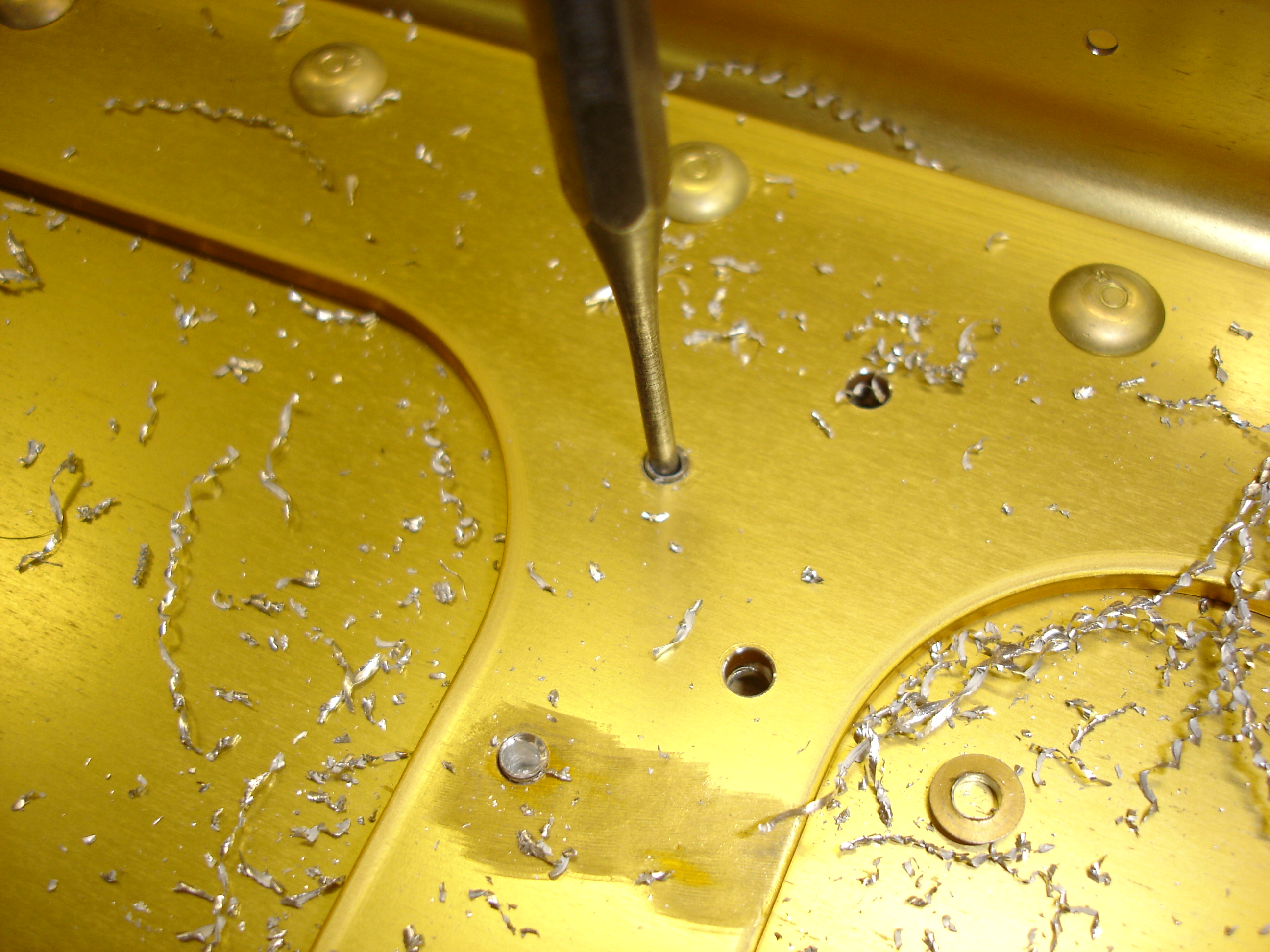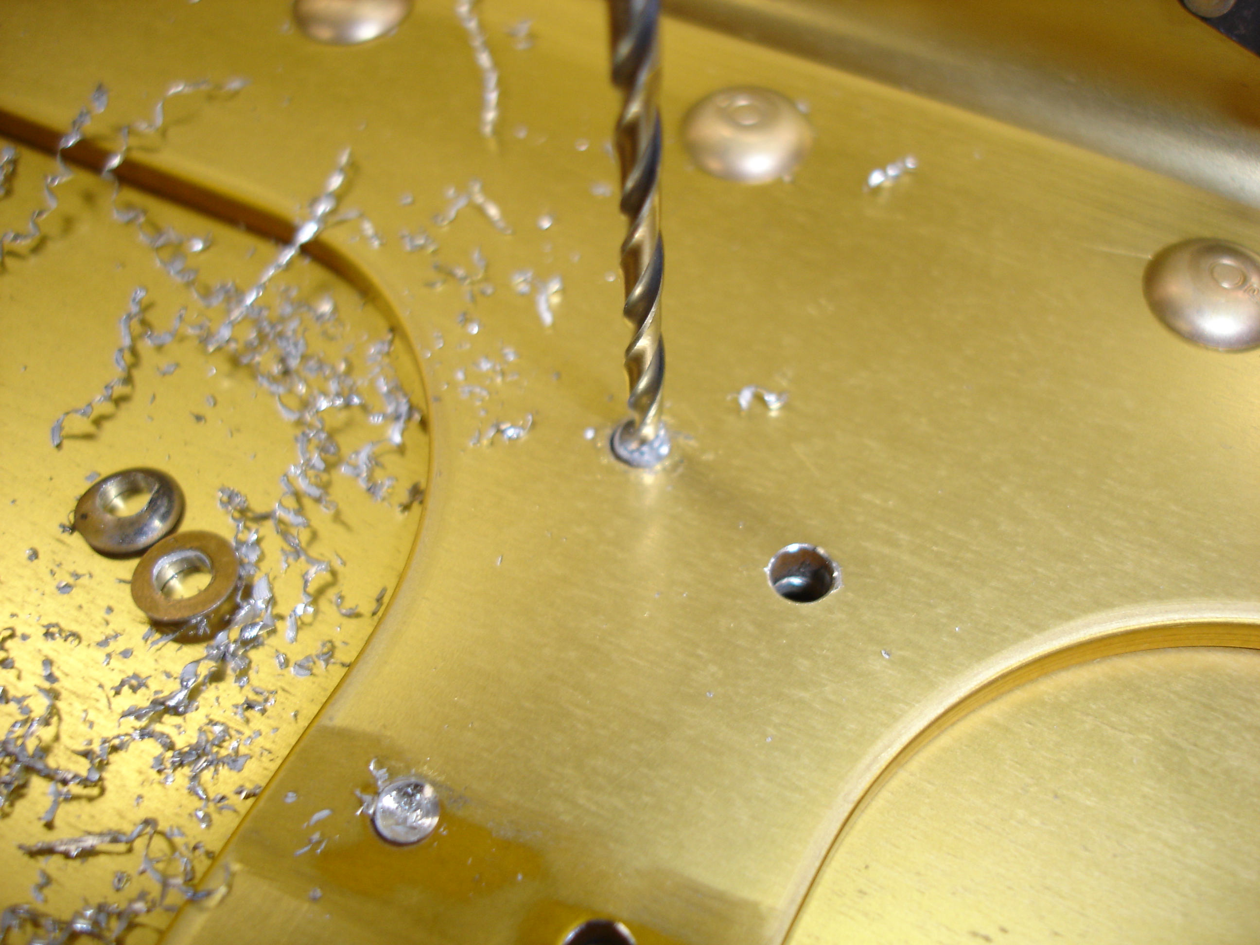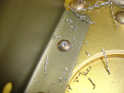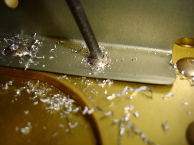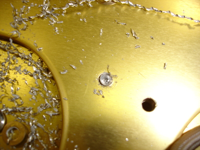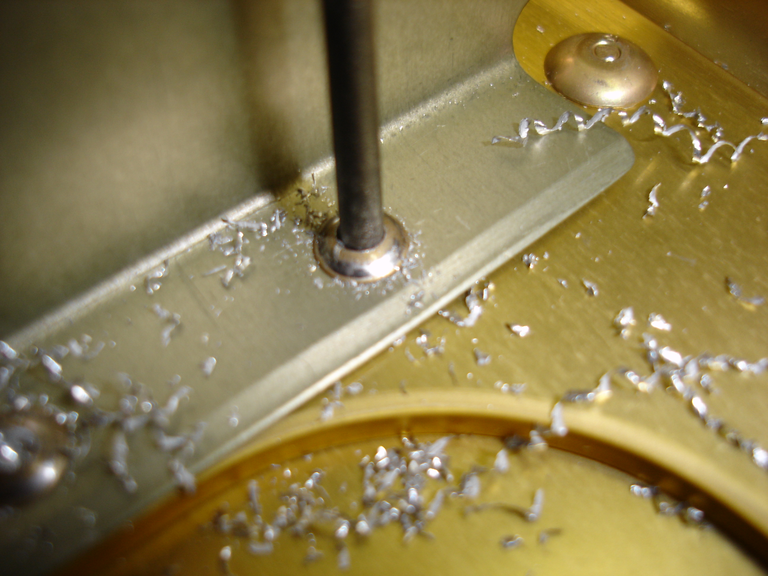 Note that it's very important to drill in the center of the rivet and drill it straight.