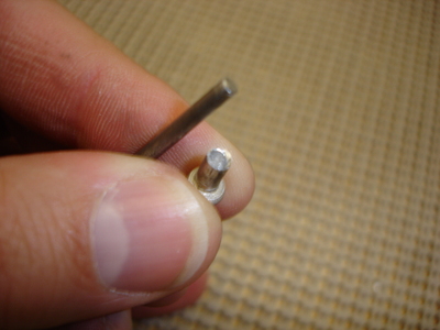 Here's the rivet after removal. Note that the hole is centered in the shank of the
