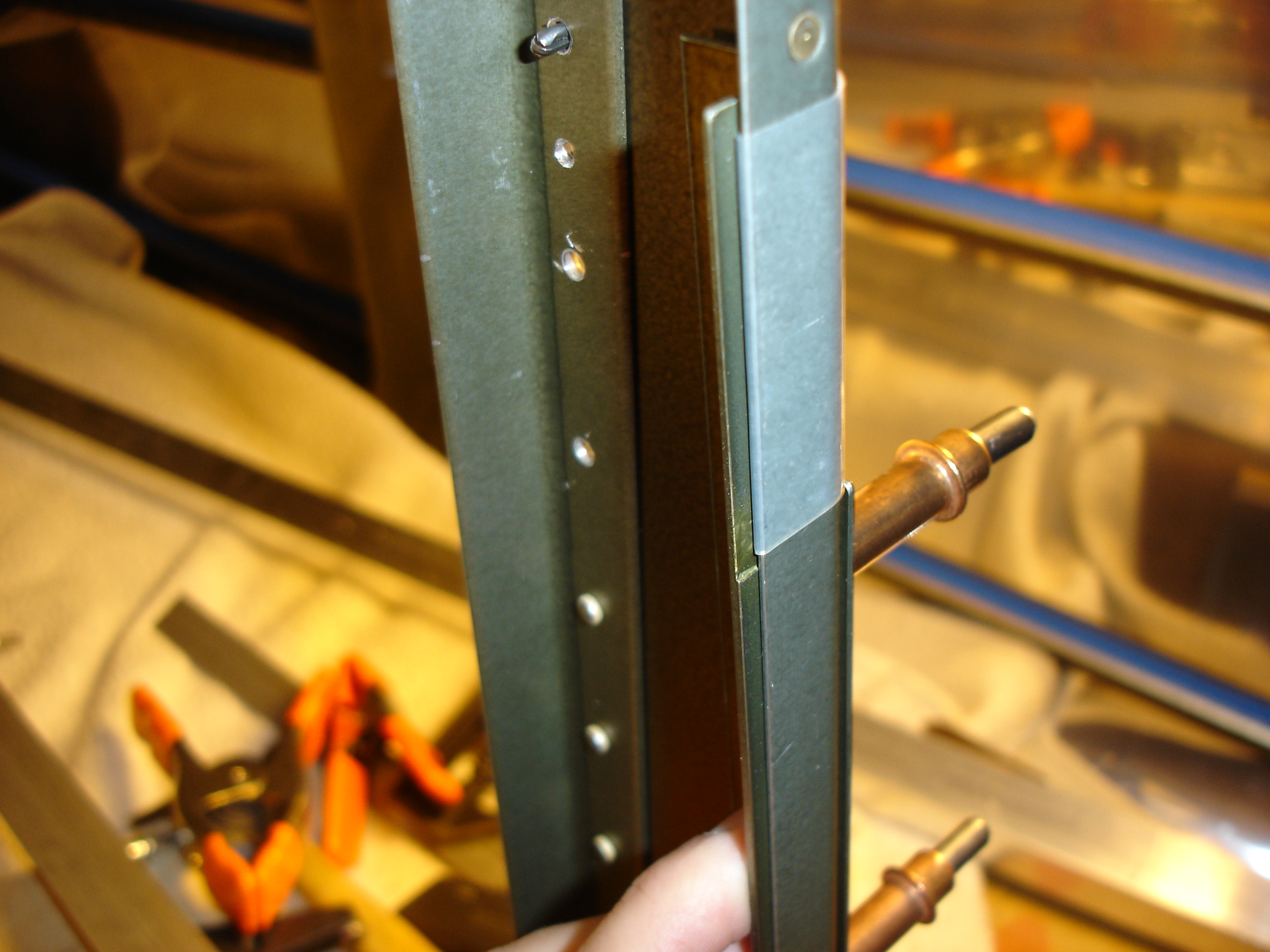 bottom-most rivet out and installed that one, too.