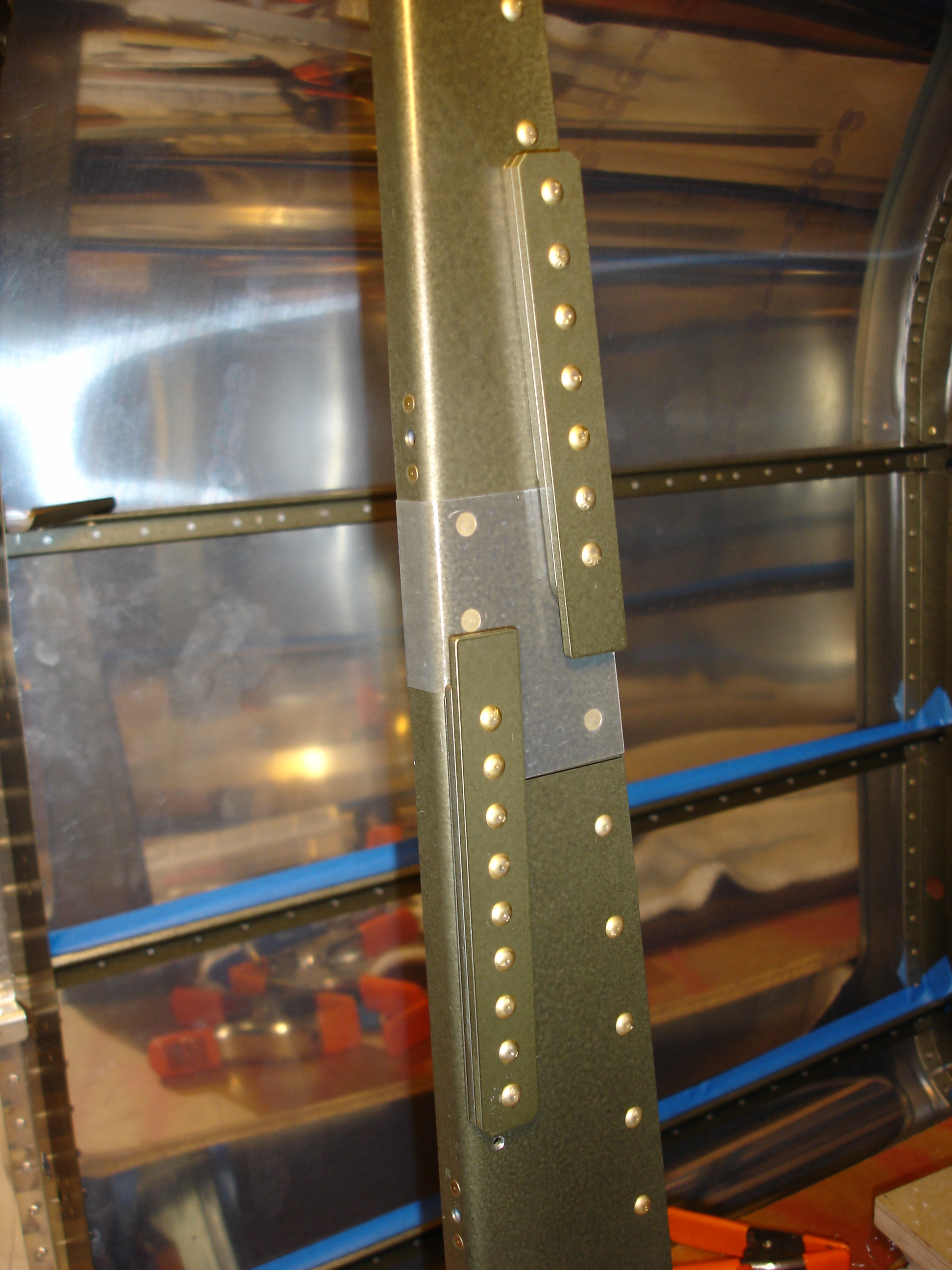 off to allow me to stick the tape to the forward flange of the bulkhead rib.