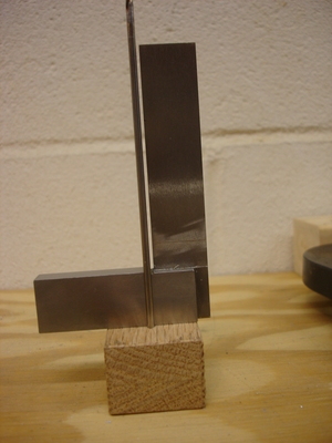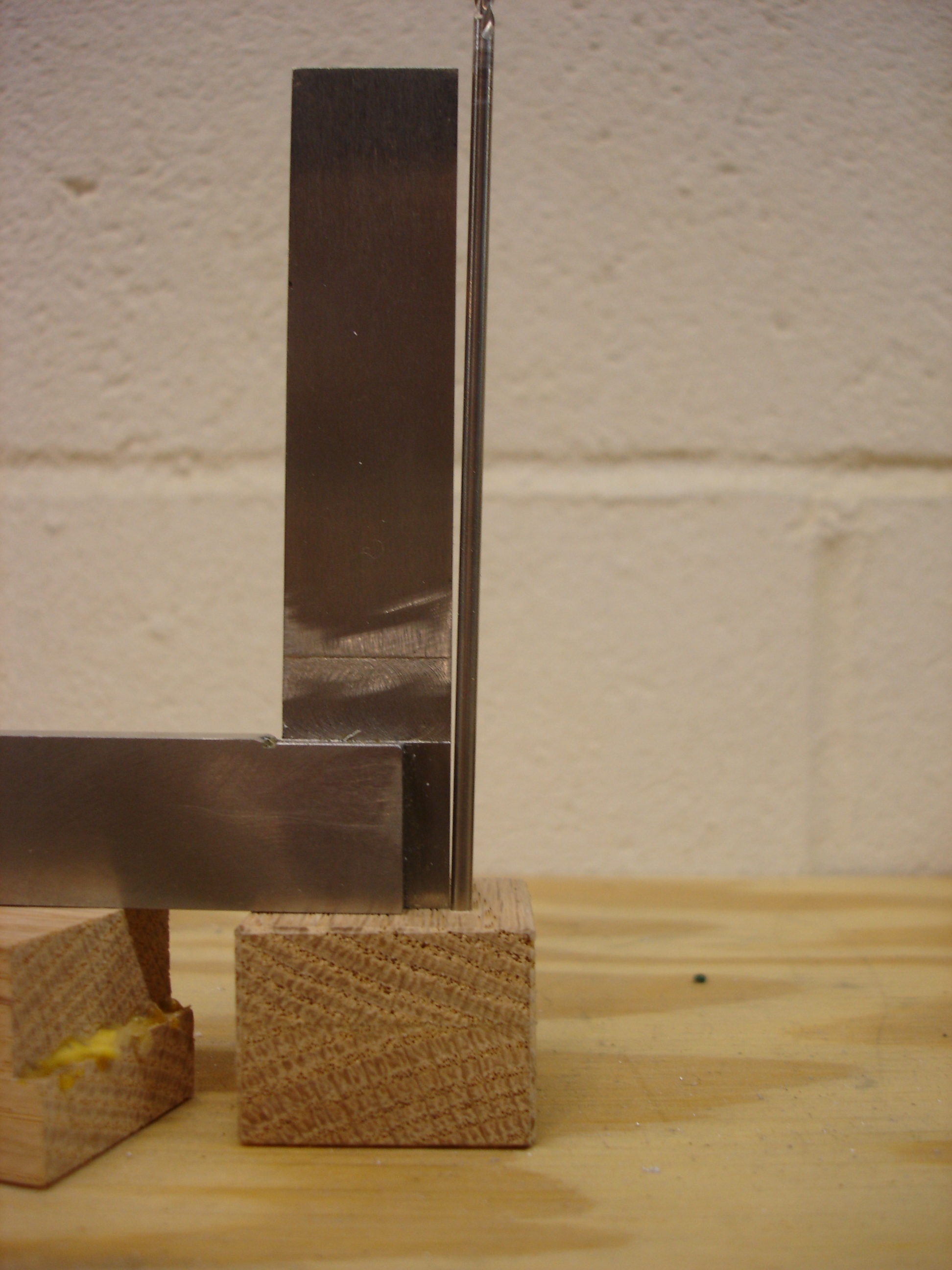 Then, with the elevators reinstalled and the block clamped between the two elevator horns,