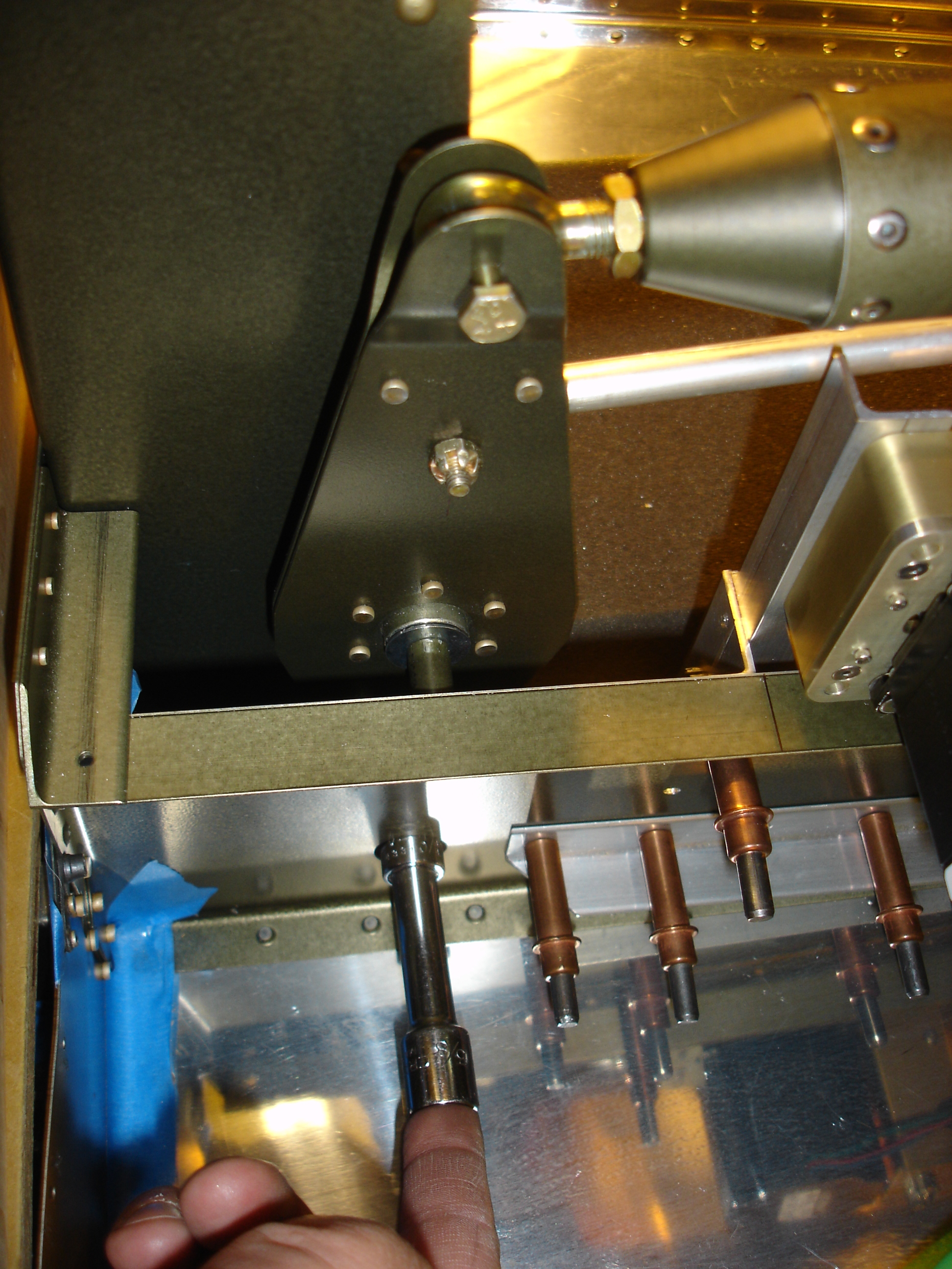 to the elevators. I located the aft-most elevator horn (the left one in my case) and drilled
