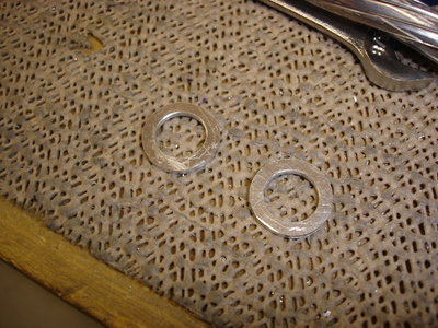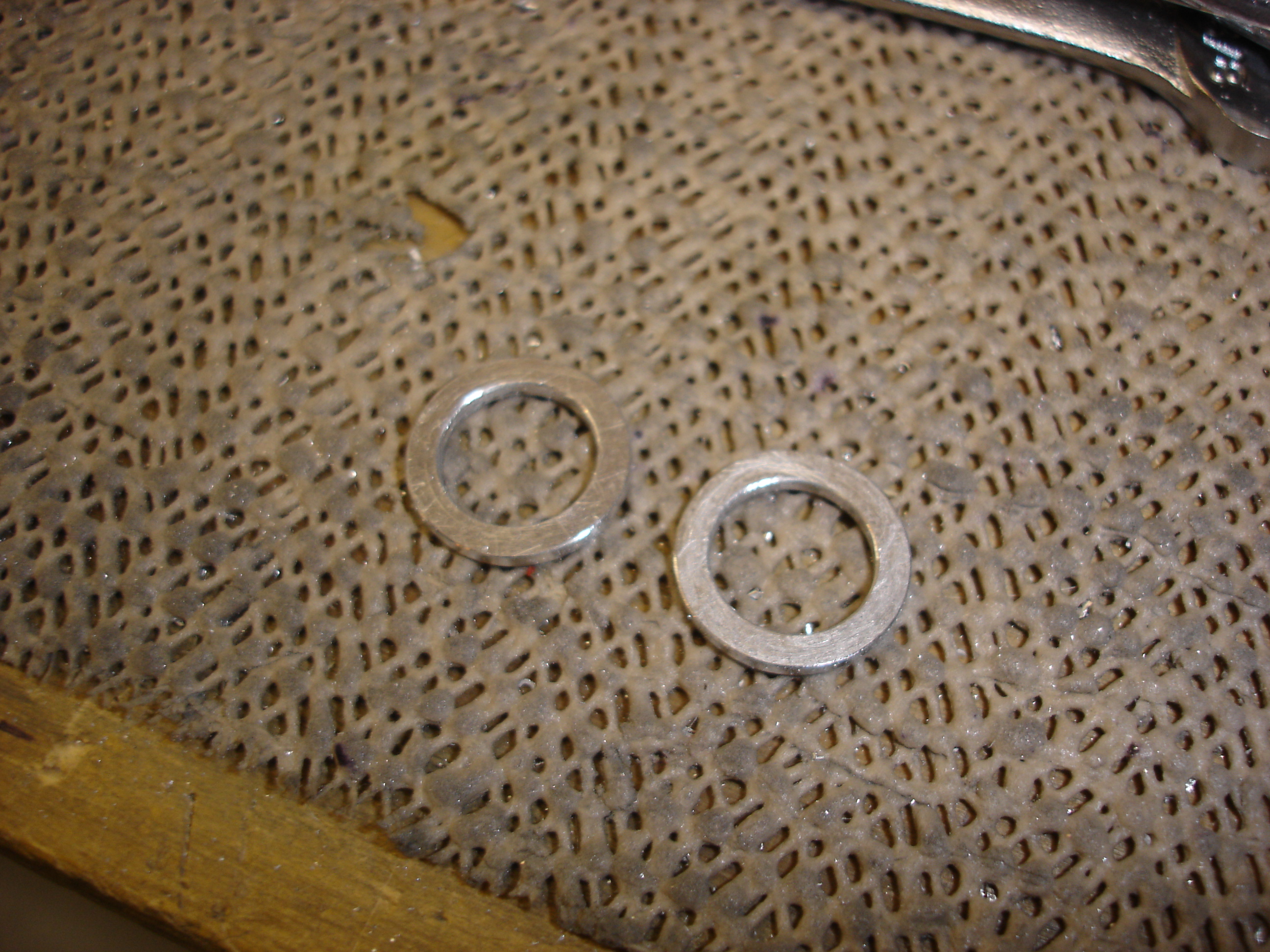 Using some .063 thick scrap, I fabricated these two washers. The holes were
