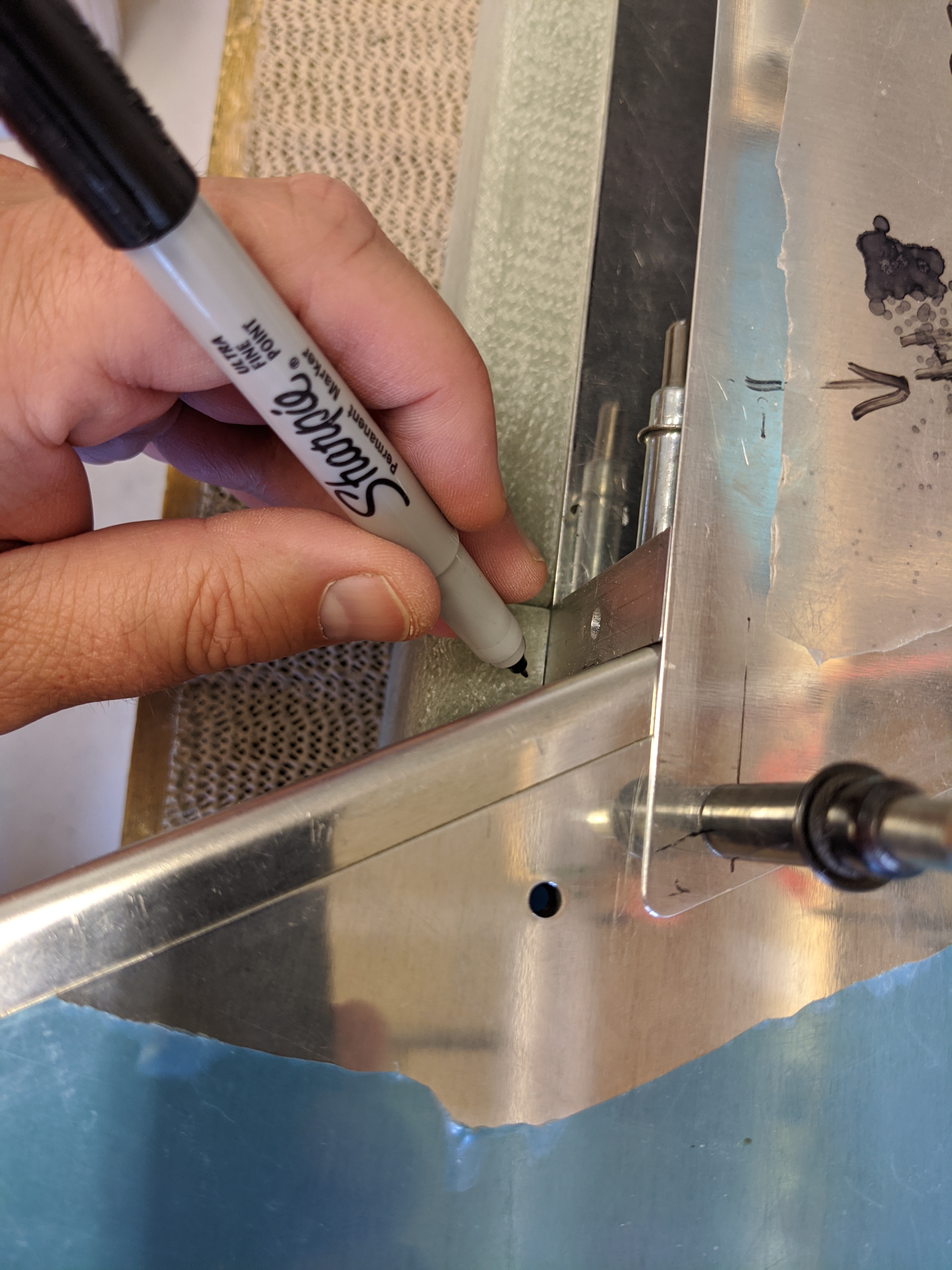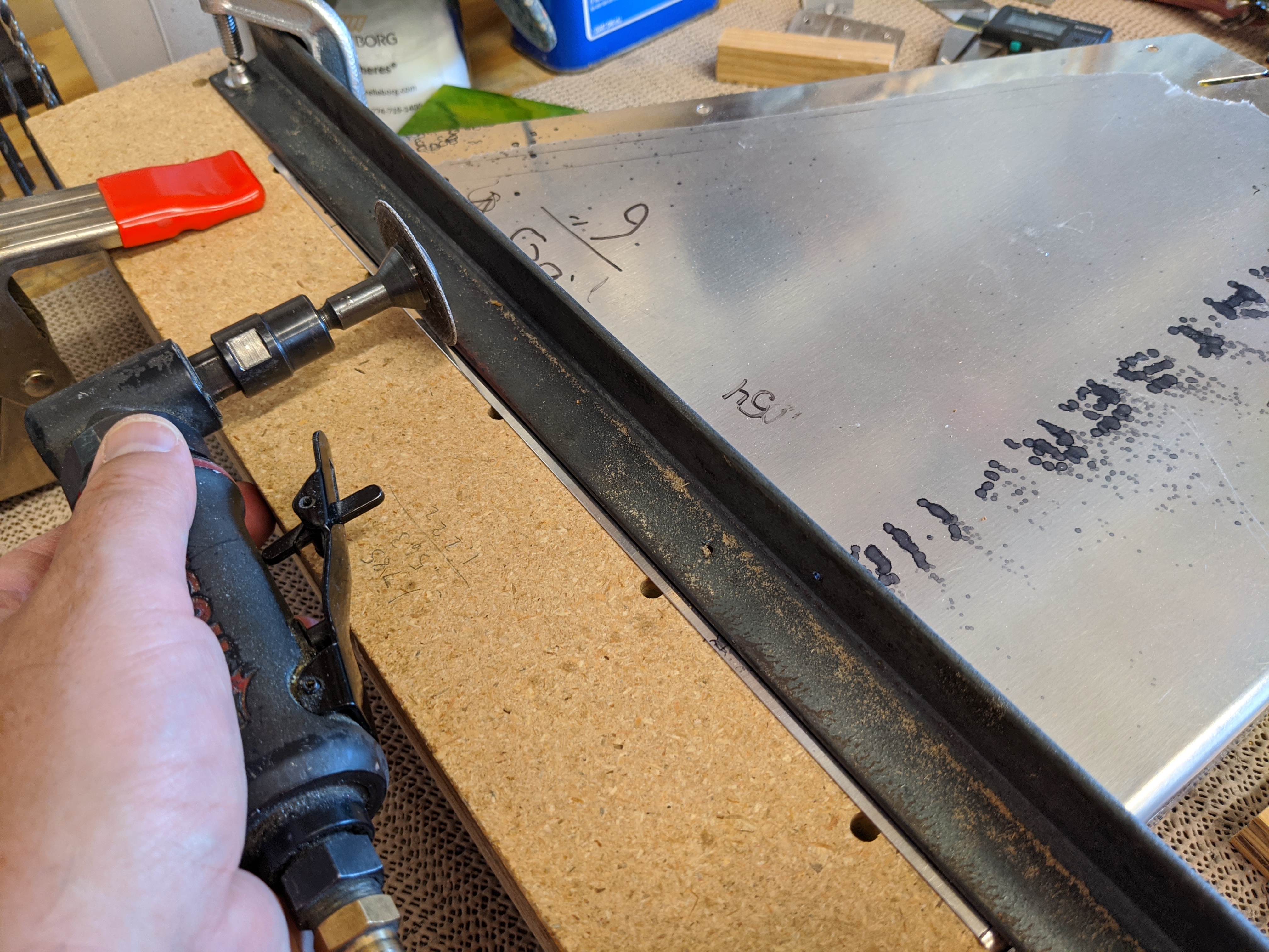the hinge eyes. I setup a piece of angle iron as a guide.