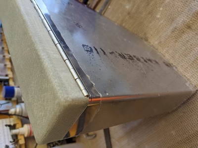 Here's what it'll look like once the hinge is all mounted. This is just a scrap piece of