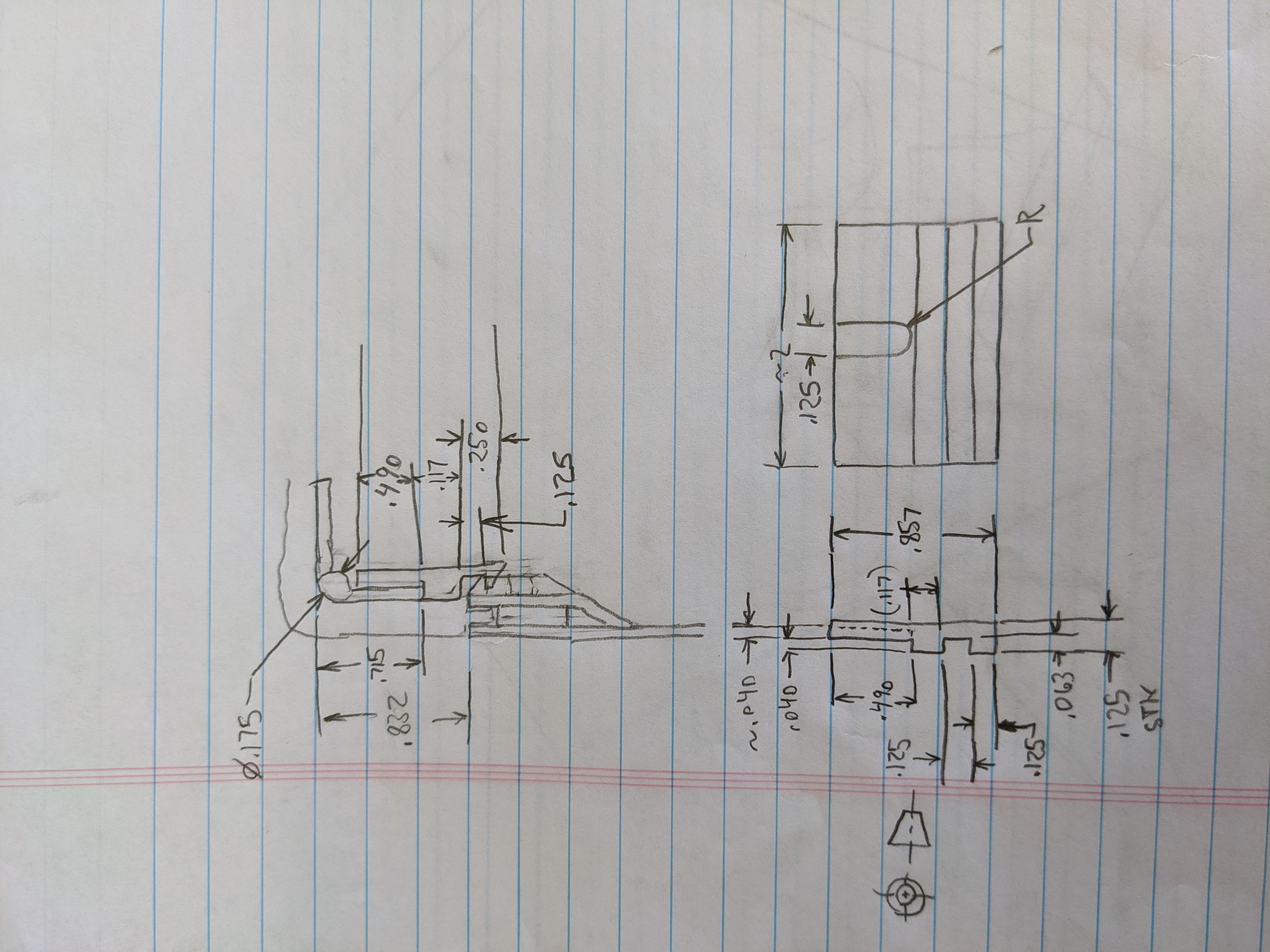Here's a sketch of the latch concept (top), as well as a little custom piece I need to